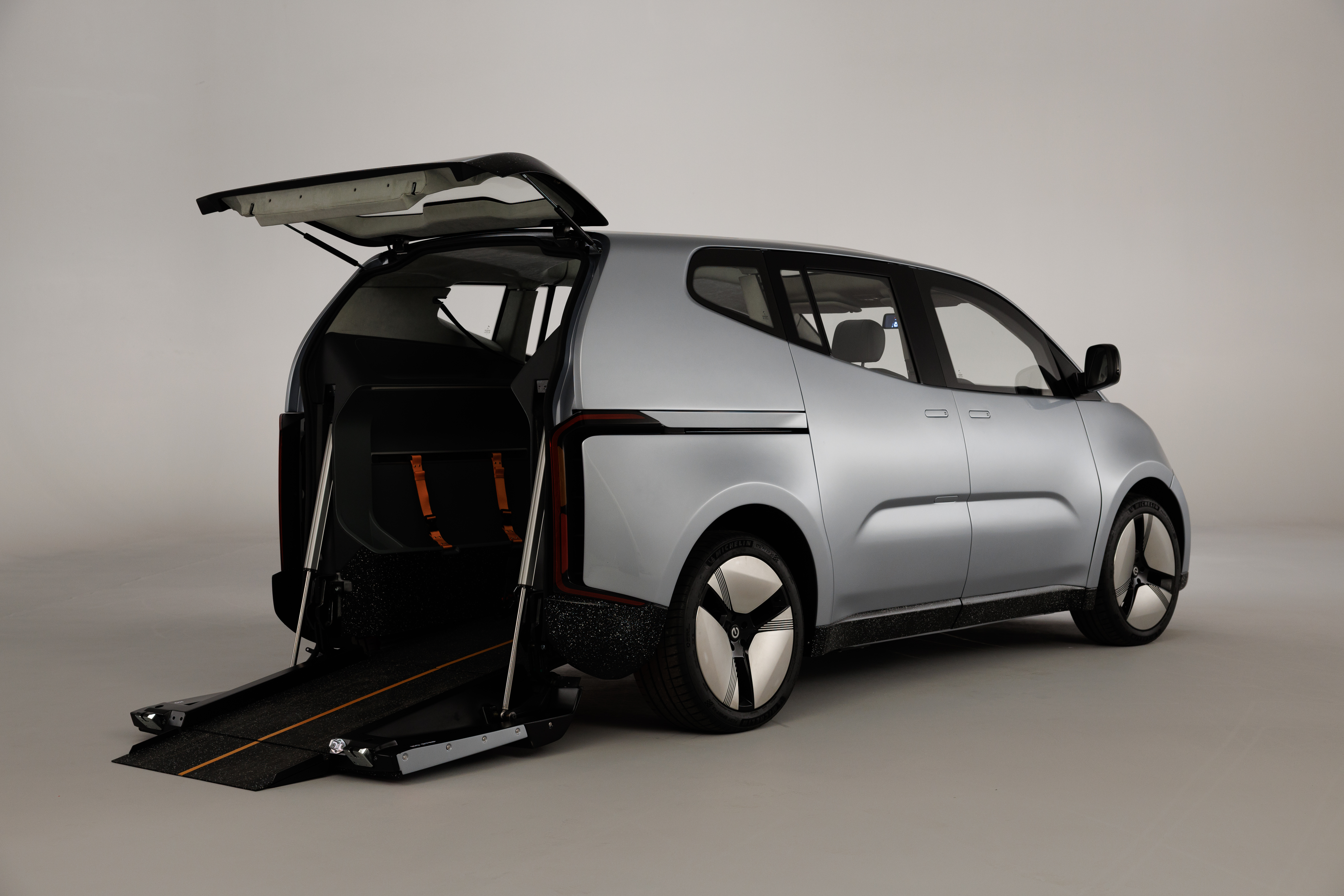 - A reconfigured battery layout to enable wheelchair access, with a low-angle rear ramp integrated into the electric tailgate